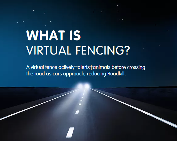 Virtual Fencing is an active electronic protection system that alerts animals before crossing the road when a vehicle is approaching between dusk to dawn.